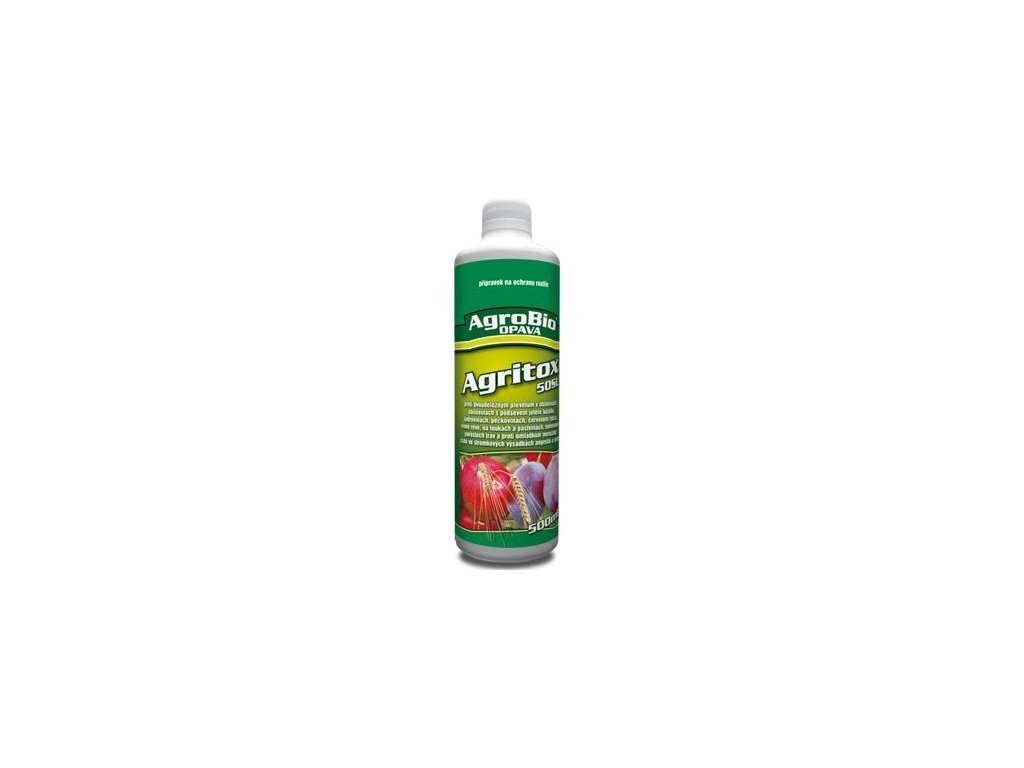 AGRITOX 50 SL postřik proti plevelům ve formě kapalného koncentrátu pro ředění vodou proti dvouděložným plevelům v obilninách, jádrovinách, peckovinách, angreštu, červeném rybízu, vinné révě, chmelnicích, na loukách a pastvinách a v semenných porostech trav. Účinkuje na dvouděložné jednoleté a vytrvalé plevele. Obsah: MCPA 500 g/l Registrované použití postřiku na plevele AGRITOX 50 SL: Obilniny, jetel luční podsev: plevele dvouděložné: 10 ml/2–4 l vody/100 m2 , 1 l/ ha, 14 BBCH, do: 29 BBCH , jetel luční 2 trojlístky Obilniny: plevele dvouděložné: 15 ml/2–4 l vody/100 m2 , 1,5 l/ha, 14 BBCH, do: 29 BBCH Tritikale: plevele dvouděložné: 12,5–15 ml/2–4 l vody/100 m2 , 1,5 l/ha, při výšce trav 25-30 cm, 14 BBCH, do: 29 BBCH Jádroviny, peckoviny: plevele dvouděložné: 25 ml/2–4 l vody/100 m2 Rybíz červený: svlačec rolní: 30 ml/2–4 l vody/100 m2 Angrešt stromky, rybíz stromky: meruzalka zlatá, hubení výmladků: 30 ml/2–4 l vody/100 m2 Réva vinná: svlačec rolní: 25 ml/2–4 l vody/100 m2 , OL 25, 2,5 l/ha, od konce července do konce srpna Chmel otáčivý: plevele dvouděložné: 15 ml/2–4 l vody/100 m2 Louky, pastviny: plevele dvouděložné: 25–30 ml/2–4 l vody/100 m2, OL 28 dní pro zkrmování, 3 l /ha Trávy semenné porosty: plevele dvouděložné: 12,5–15 ml/2–4 l vody/100 m2 , 1,5 l/ha Jetel luční: plevele dvouděložné: 5–10 ml/2–4 l vody/100 m2Doplňkové parametry