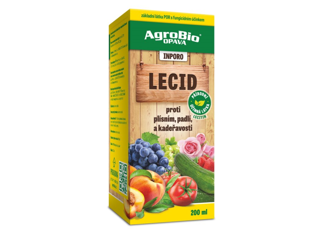 Přípravek na přírodní bázi proti plísním zeleniny, kadeřavosti broskvoní, plísni a padlí révy vinné, proti houbovým chorobám okrasných rostlin, aj. Obsahuje: lecitiny (100 %) Jak účinkuje? LECID je přírodní produkt založený na sójovém lecitinu, který obsahuje látky, jako jsou fosfolipidy, esenciální mastné kyseliny, cholin, inositol, fosfor a vitamin podle zprávy SANCO 12798/2014 jsou lecitiny klasifikovány jako základní látka přípravků na ochranu rostlin s fungicidním účinkem zvyšuje pevnost, zlepšuje konzistenci, lesk a barvu ovoce a zeleniny, snižuje určité poruchy u ovoce, pomáhá hojit drobná zranění a má stimulační účinek zvyšuje vitalitu plodin je vhodný pro všechny rostlin účinný na houbové choroby zeleniny, révy, ovocných dřevin, drobného ovoce a okrasných rostlin vhodný pro ekologické pěstování Pro jaké rostliny a proti jakým chorobám je registrován? všechny plodiny (omezení praskání plodů, zvýšení pevnosti plodů, hojení, zvýšení vitality, aj.) brambory, rajčata (plíseň bramborová) okurky (padlí) jahody, maliny (padlí, houbové choroby, fytoftorová kořenová hniloba) angrešt (padlí) jabloň (padlí jabloňové) broskvoň (kadeřavost) réva vinná (padlí révové, plíseň révová) mrkev, salát, kožliček polníček (padlí) štěrbák - endivie (alternáriová skvrnitost) okrasné rostliny (padlí, houbové choroby) Jak jej použít? postřikem většinou od fáze vývoje prvních listů až po zralost max. 12x za rok (podle plodiny) interval mezi aplikacemi 5-14 dní (podle plodiny)Doplňkové parametry