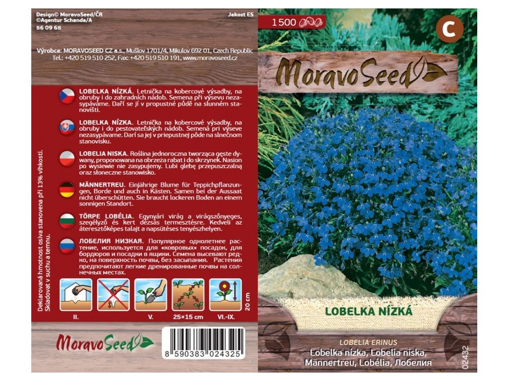 Lobelka modrá je nízká polštářovitě rostoucí letnička vhodná do truhlíku a na obruby záhonů. Semena při výsevu nezasypáváme. Daří se jí v propustné půdě na slunném stanovišti.Doplňkové parametry