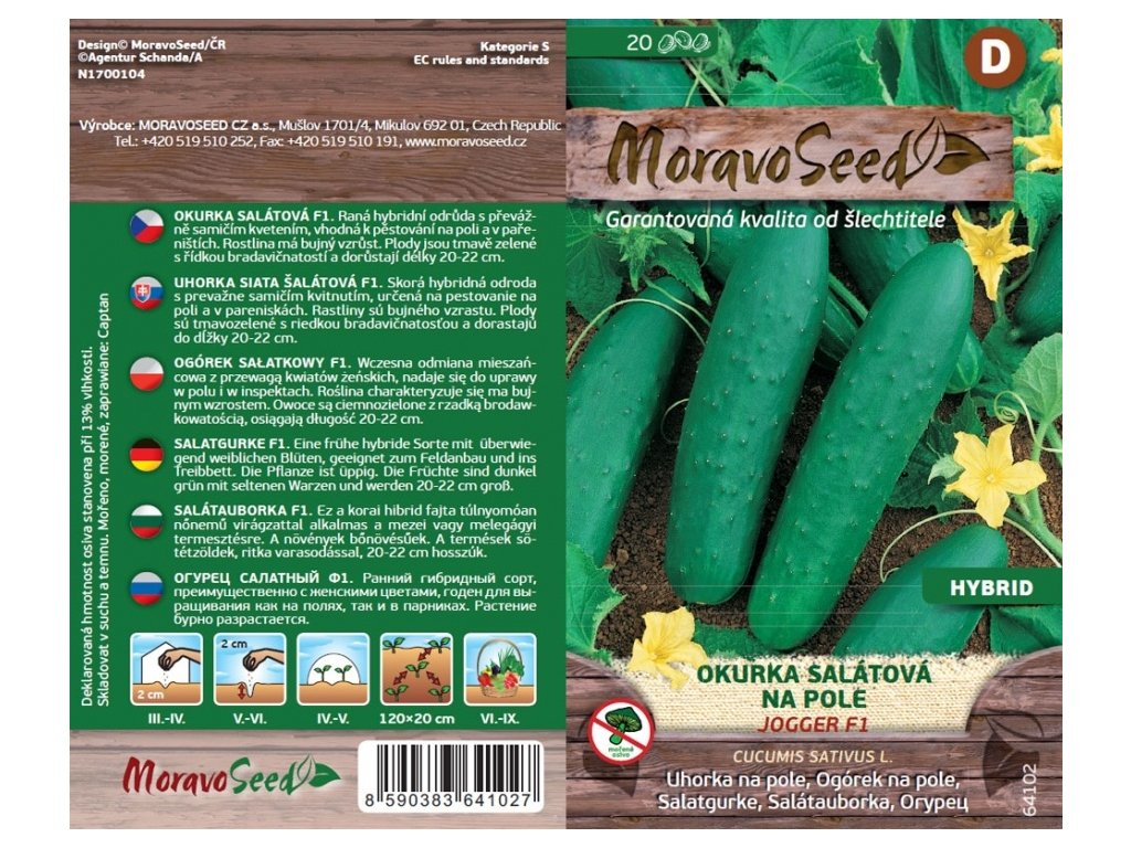 Okurka salátová na pole Jogger F1 je partenokarpický hybrid salátové okurky s výhradně samičím kvetením, určený k rychlení ve sklenících a ve fóliových krytech. Rostlina má bujný vzrůst. Plody jsou válcovité, tmavě zelené a dorůstají délky 30 až 35 cmDoplňkové parametry