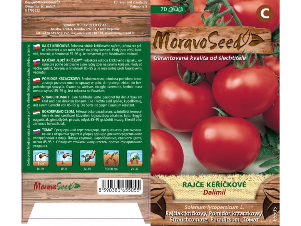 Poloraná odrůda keříčkového rajčete, určená pro polní pěstování a pro ruční sklizeň na přímý konzum. Plody jsou větší, kulovité, červené, o hmotnosti 85-95 g. Je rezistentní proti fusáriovému vadnutí.Doplňkové parametry