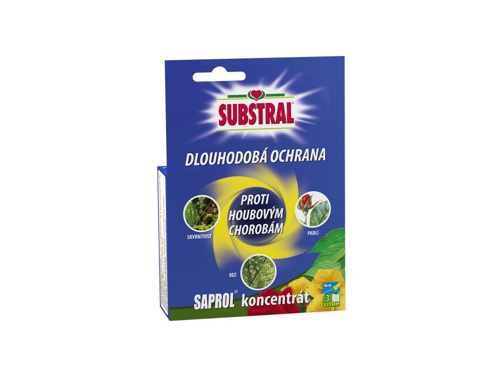 Saprol - přípravek proti houbovým chorobám růží (rez, skvrnitost, padlí), použití 10 ml/1L vody. Působí preventivně a při použití v raném stádiu napadení i léčivě, aplikuje se ve vodném roztoku postřikem nebo rosením.Doplňkové parametry