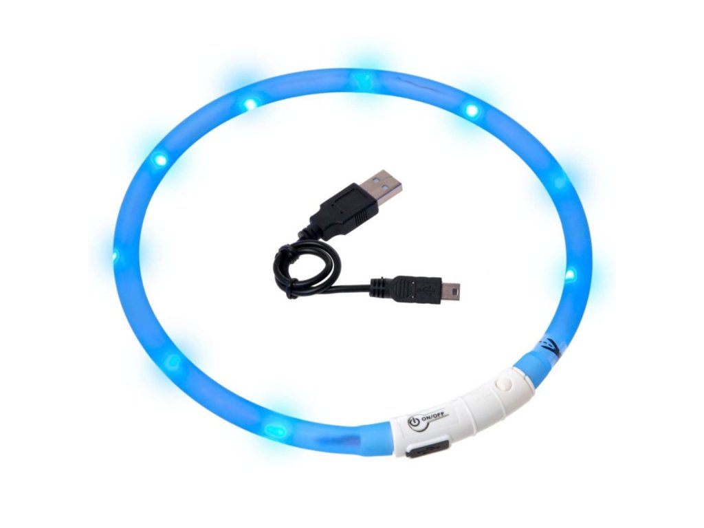 Svítící LED obojek 75cm dobíjecí modrý